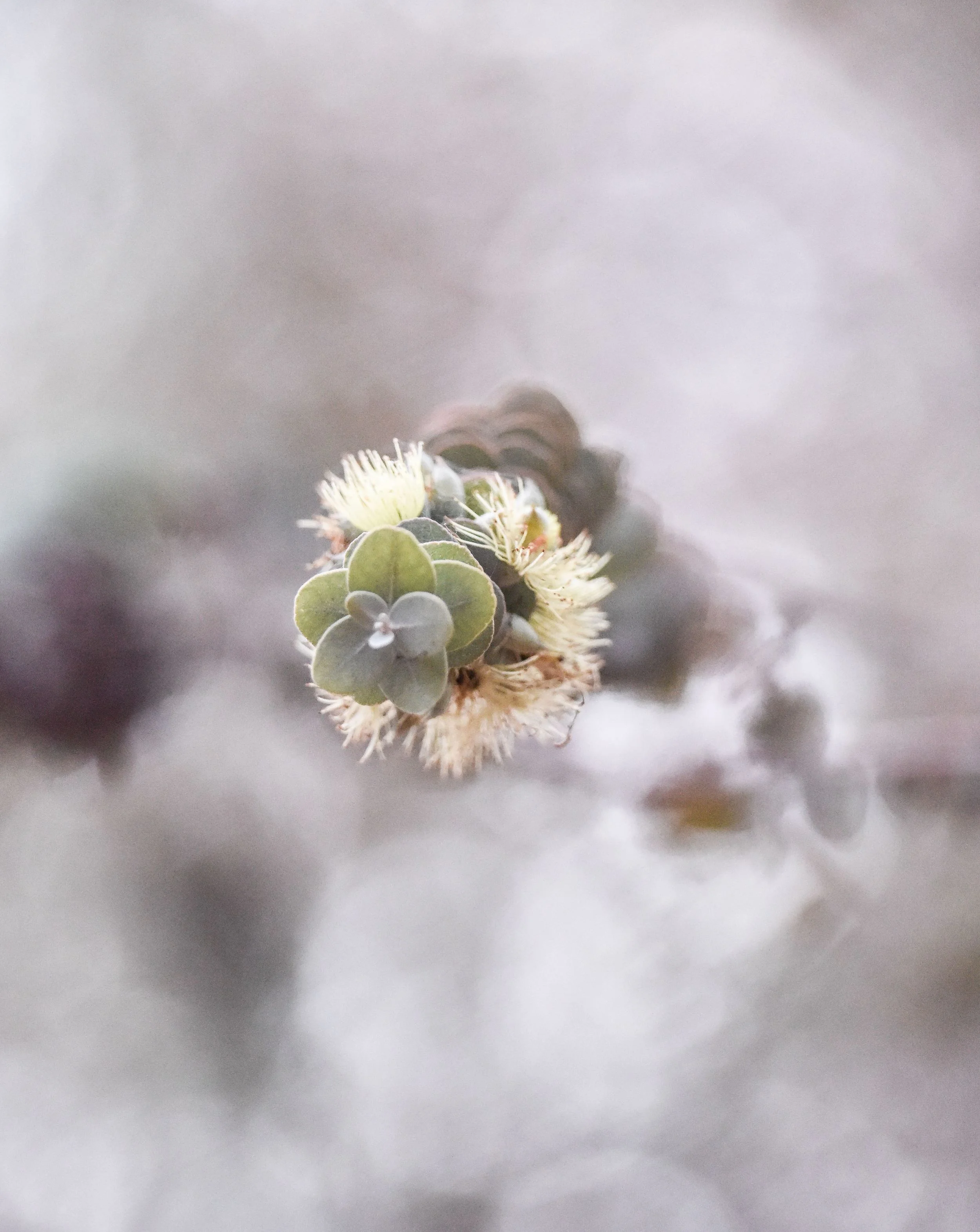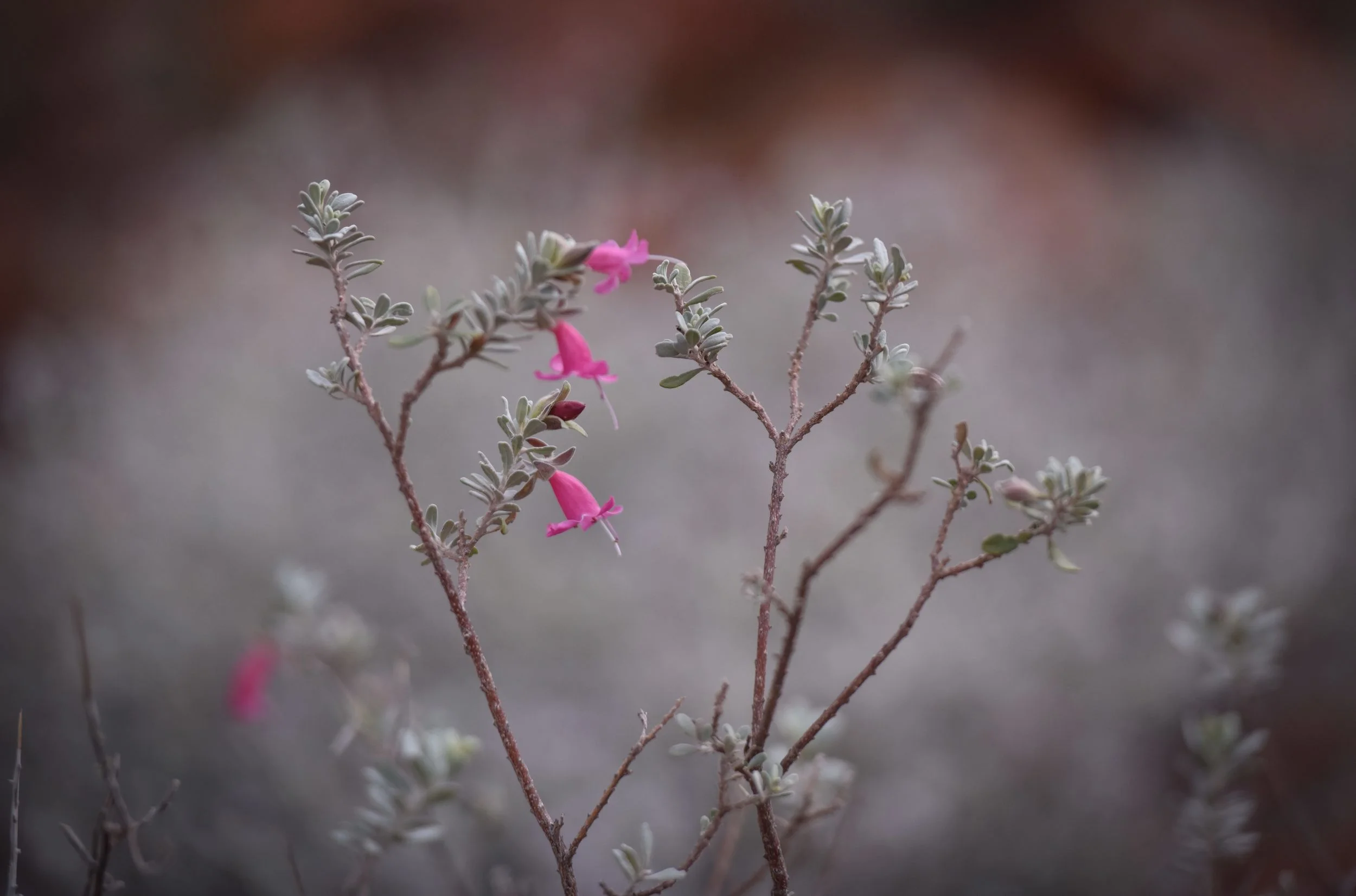 From what appears to be a rather plain, spindly desert plant, this unusual flower is currently casting radiant speckles of red across the top of Mount Leonora. A local Aboriginal elder informed me they're "Wild Boronia" and are boiled for their perfume.